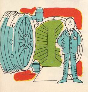The illustrations capture both the era’s characteristic biases and the naiveté of an overly simplistic view of the market economy.