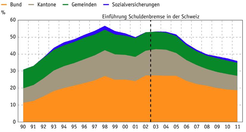 Government debt reduction ("Schuldenbremse") policy since 2002.